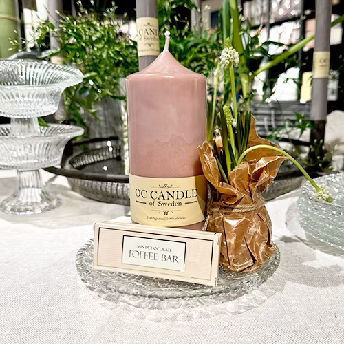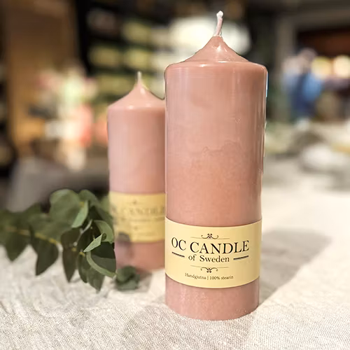 Ett fantastiskt blockljus som vi gjuter för hand i 100% stearin och med blyfri bomullsveke.