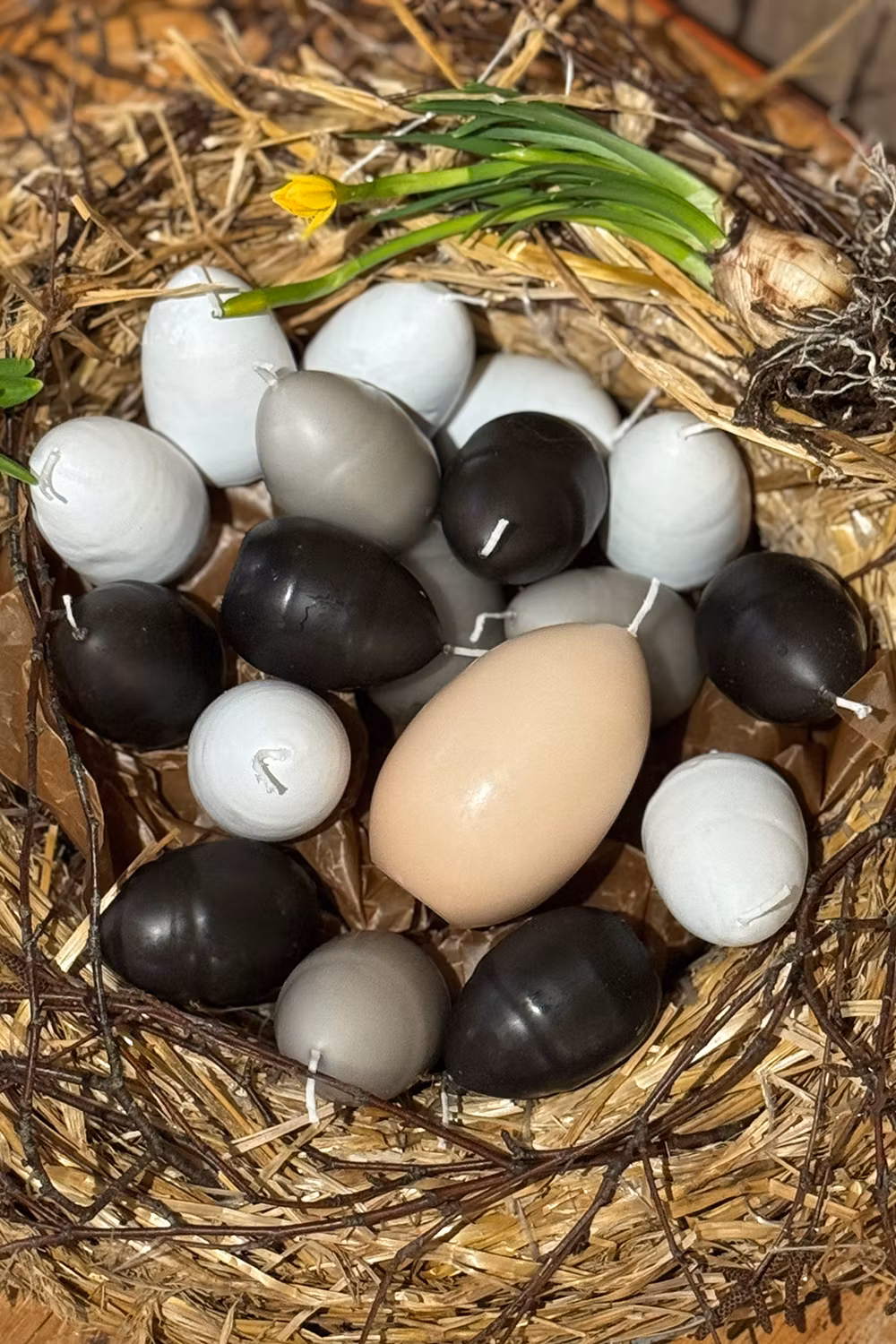 Äggljus, Vit med gula 20 kr Denna varan är tyvärr slutsåld. Lagersaldo: 10 Artikelnummer: 149 Dela Information Ett litet gulligt ljus som är perfekt till påsk!Storlek: 70x50mm.Brinntid ca 5 timmar.Färg: Vit med gul insida.
