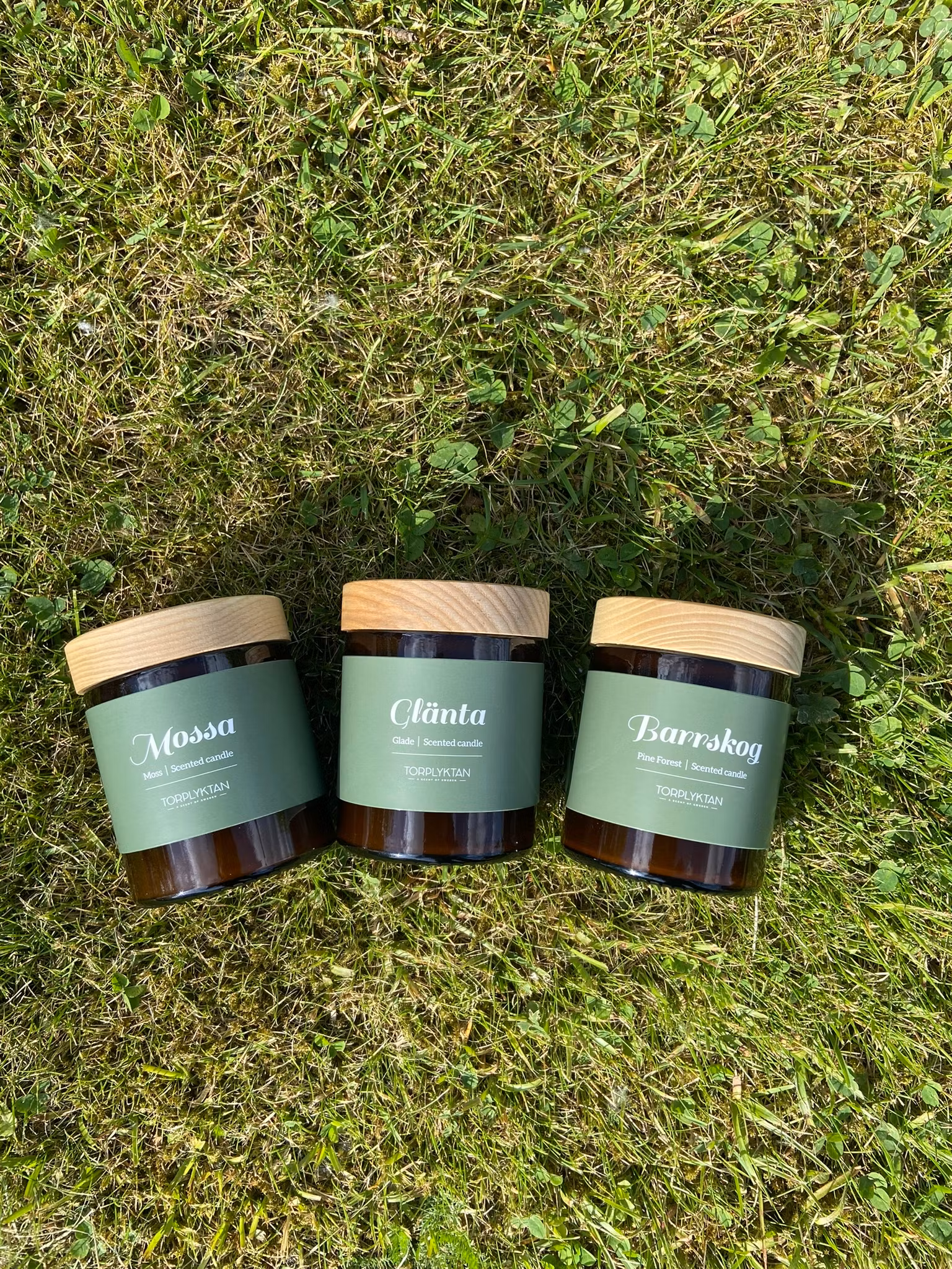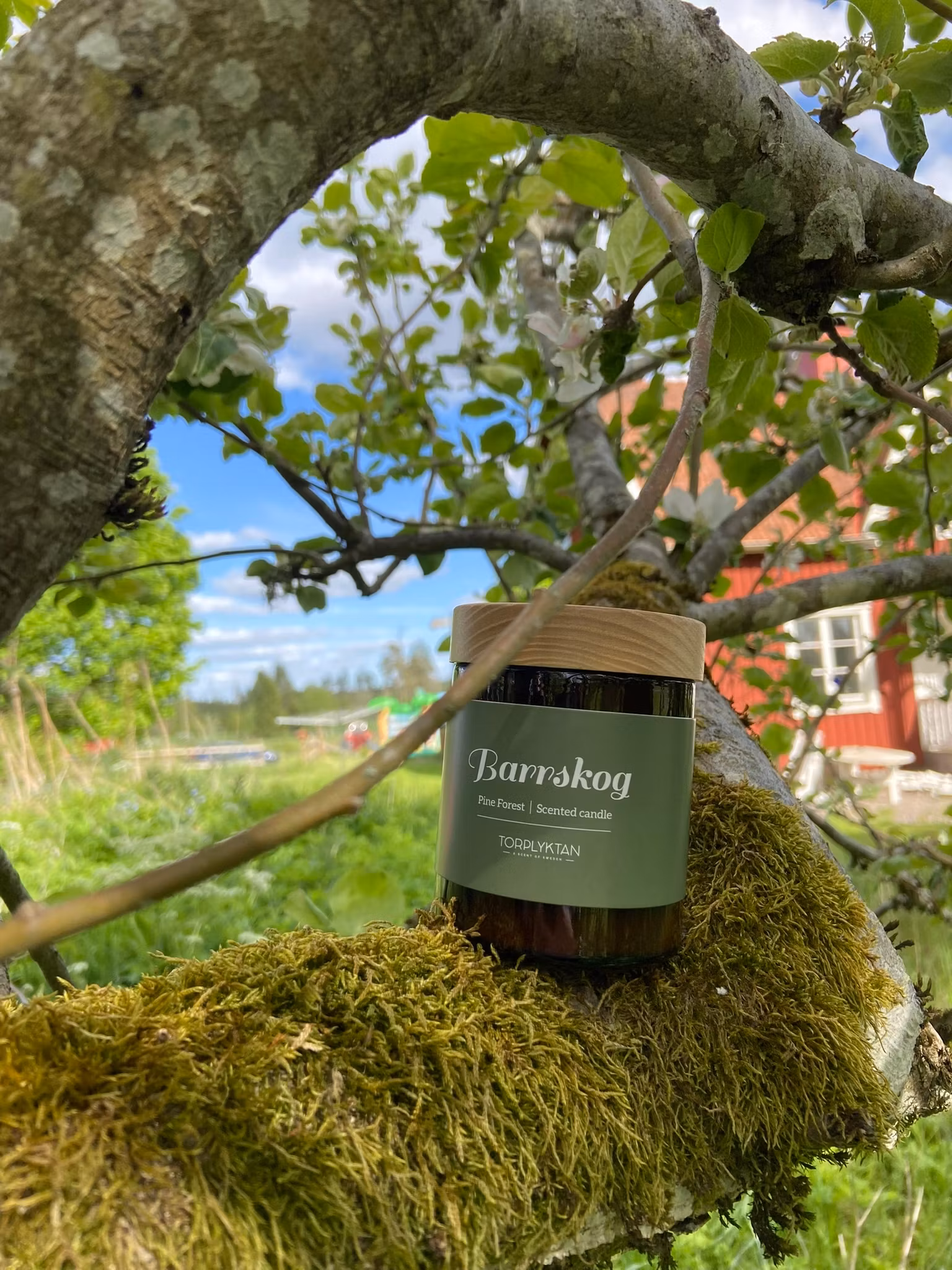 Vårt doftljus Barrskog är en unik upplevelse som fångar träets friska och livfulla toner. Doften är en varm och fräsch blandning av gran och tall som för tankarna till uppfriskande promenader i våra skogar. Doftens tydliga inslag av gran och tall skapar en kraftfull, men ändå balanserad doft som ger en känsla av harmoni och välbefinnande. Granens yviga skott och spruckna bark ger en ytterligare dimension till doften som omfamnar dina sinnen så att du nästan kan höra tallarnas susande ljud.
