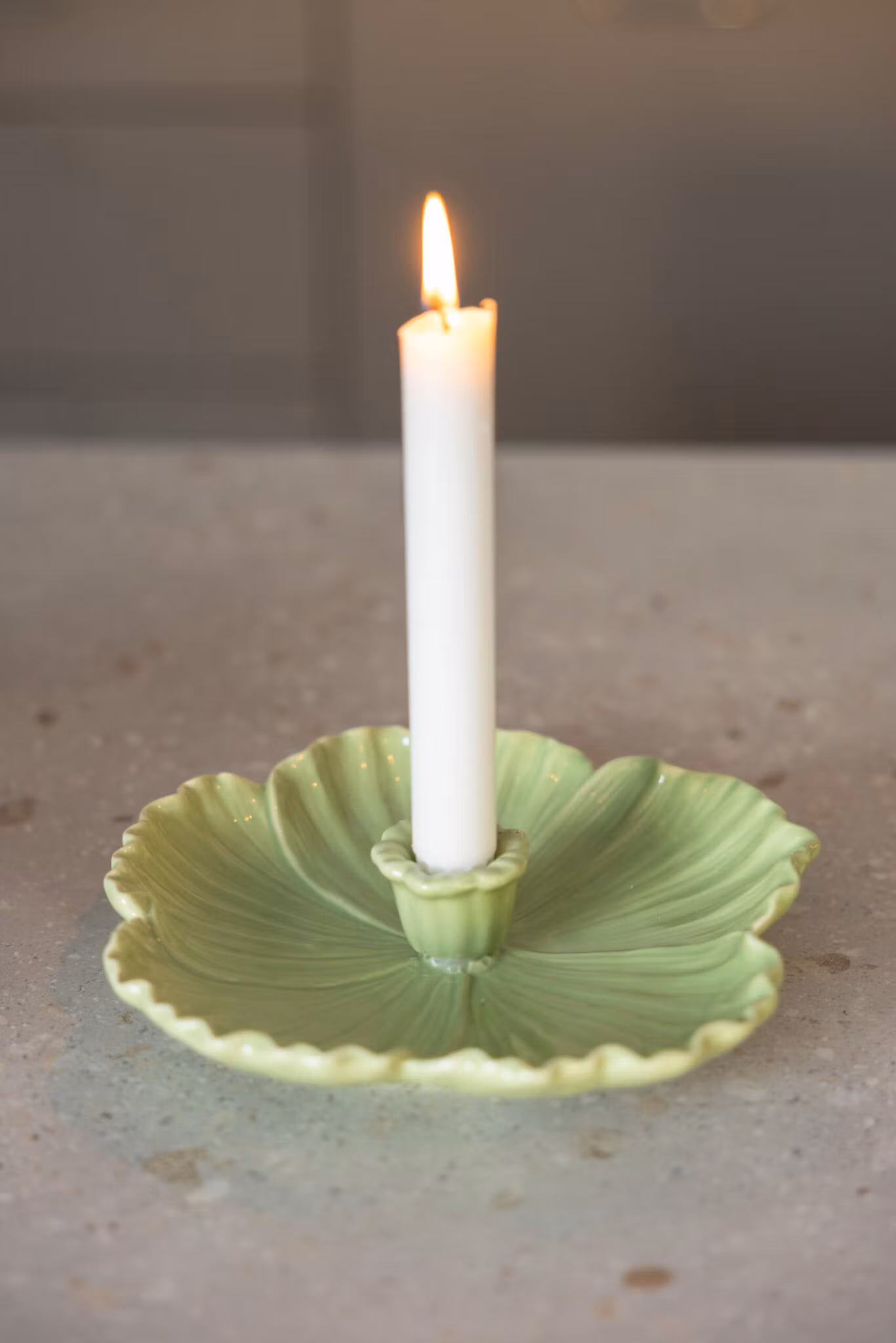 Keramikljusstake i form av en blomma. Detta vackra konstverk är både dekorativt och funktionellt.