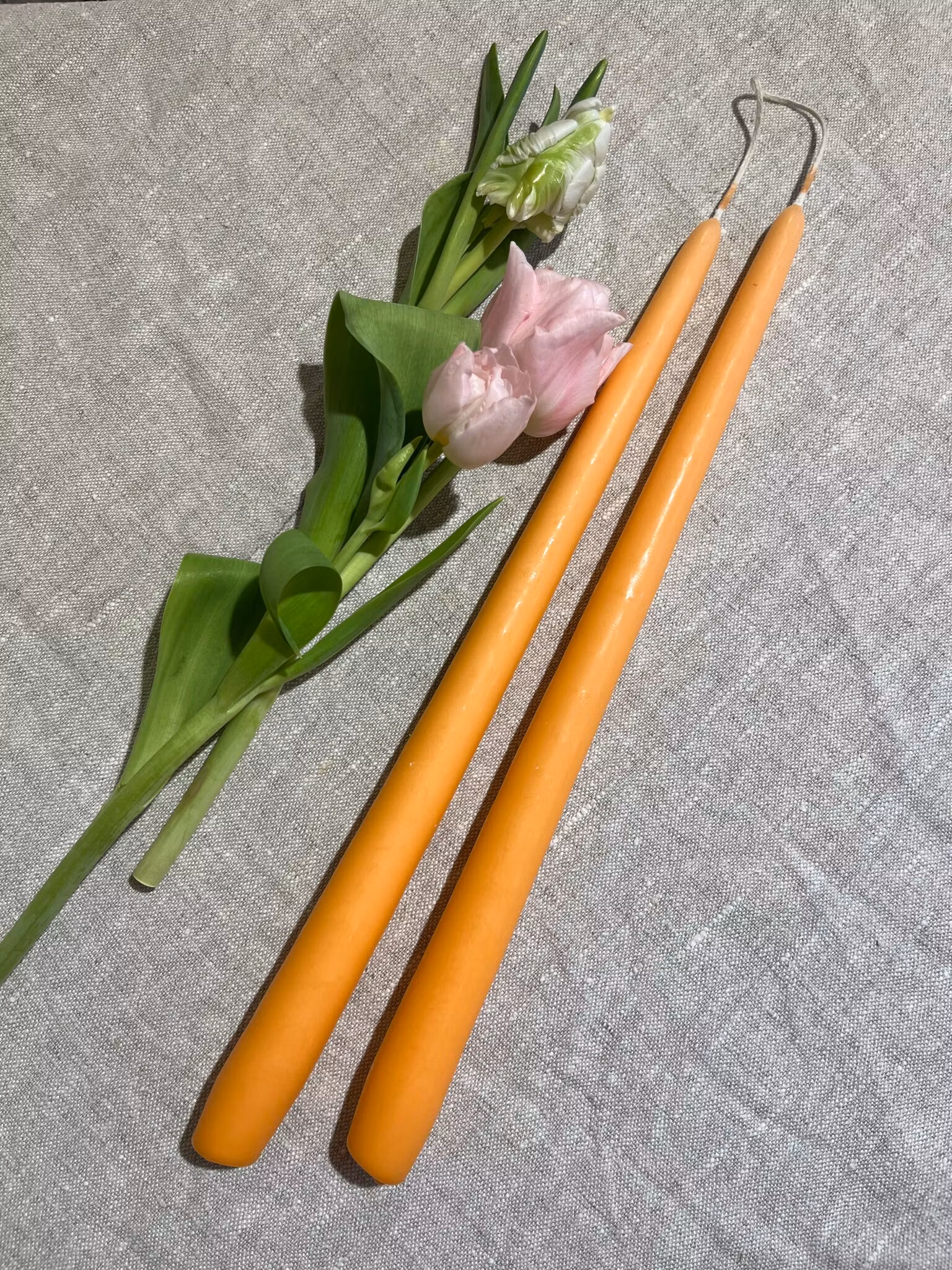 Handstöpta och svensktillverkade parljus. Brinner med fin låga.