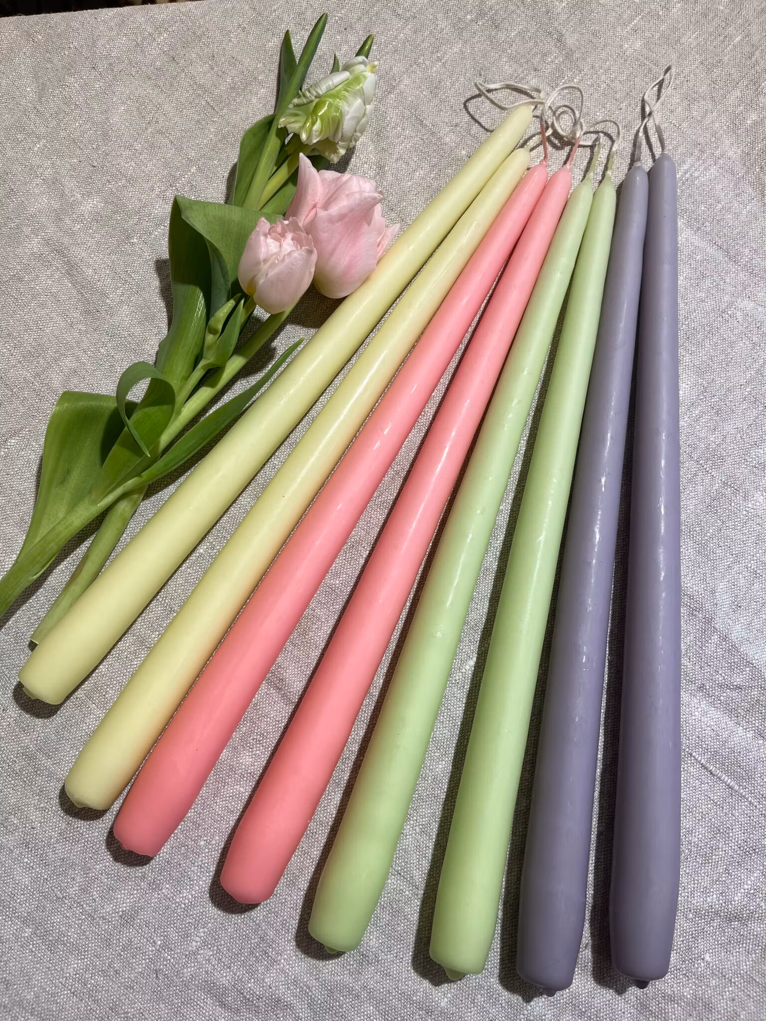 Handstöpta och svensktillverkade parljus. Brinner med fin låga.