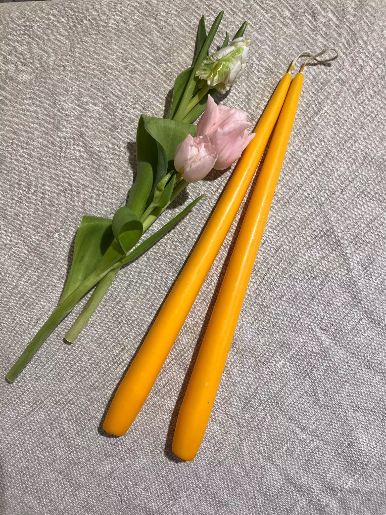 Handstöpta och svensktillverkade parljus. Brinner med fin låga.
