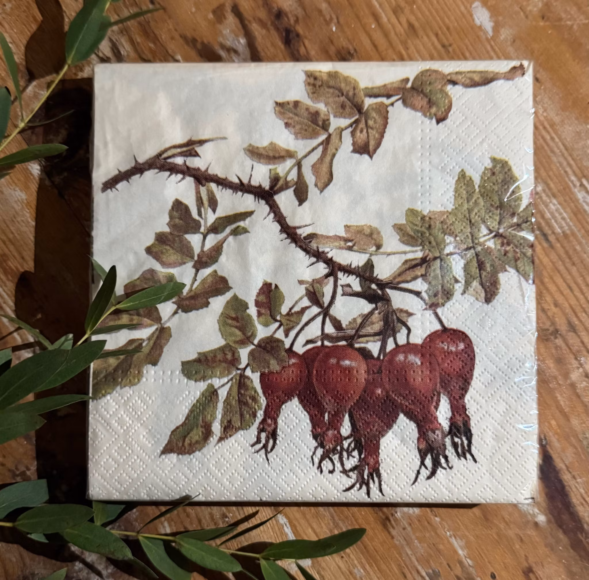 Servett Nypon 59 kr I lager. Lägg i korgen Lagersaldo: 3 Artikelnummer: STNAP185 Dela Information Server med tryck på nypon.Färg: vit bakgrund med nyponStorlek: 16,5x16,5x3 cm